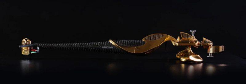 全新的GRAVITION Ti唱臂为三颗1mm直径的高强度滚珠支撑的单点结构,相对于传统的轴承结构提供了更精准和更灵活的拾取性能。唱臂使用了生物仿生科技进行设计,并使用了金驰引以为傲的碳纤维科技和钛合金3D打印科技,唱臂使用碳纤维以双螺旋编制的方式一体成型。石墨烯环氧树脂,单向碳纤维,内夹层等科技为其提供了更优秀的强度和阻尼。唱臂的开发是与法国FEMTO研究所和谢菲尔德哈勒姆大学合作进行的。数据表明臂管具有出色的强度和刚性在1232psi的大压力下,臂管的形变仅为0.003mm。