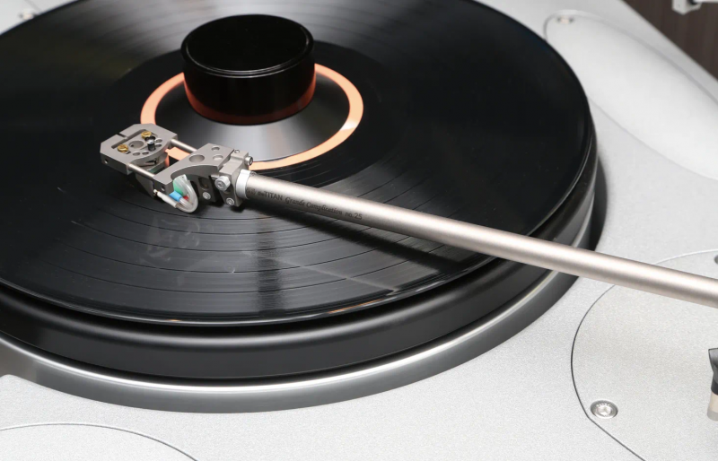 正如型号所暗示,Titan Grande Complication唱臂上所有的CNC部件均由枪灰色的钛合金制成,自然是取钛合金质量轻且强度高的优点,一方面可以灵敏地跟随唱片凹槽中的起伏波动,另一方面也有可以有效抑制产生的谐振,保证极低的失真和纯净的音质,同时实现极高的能量传输效率。配重块则是采用HD18钨材料。