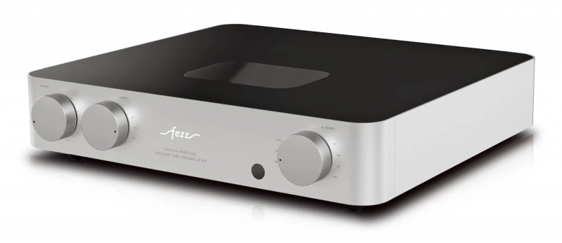 说说系统中的Fezz Mira Ceti 300B电子管单声道后级,外观上简明精致,采用PSE并行单端放大线路设计。当中两支用作功率输出的300B电子管相当瞩目,搭配两支6SN7作为前置放大器和功率驱动器。当中易于取用的保险丝可在功率管发生故障时保护放大器,其电路架构和专门设计的输出变压器,让它可提供15W功率和低THD失真。当Mira Ceti 300B和SAGITA Prestige电子管前级搭配使用,这是一个比较合理的组合并且有着出色的音质表现。