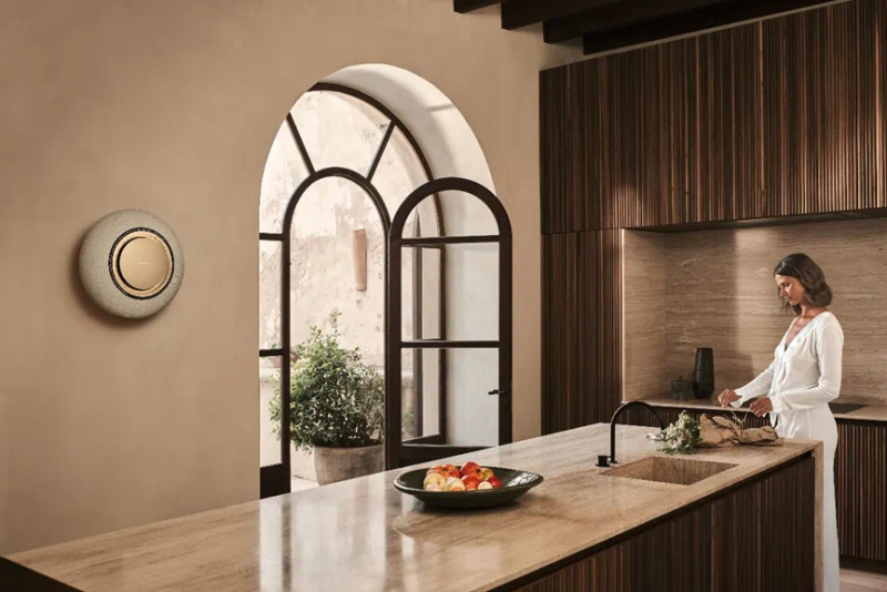 Horizon“地平线”系列无线蓝牙音箱不仅仅是音响设备,智能交互体验同样令人赞叹。内置的AuraControl™系统配备了100个隐藏LED灯、接近传感器与环境光传感器,用户只需靠近设备,便会自动激活,灯光也会随着音乐律动。通过简单触摸中置低音单元周围的光圈,便可轻松调整音量,清晰显示当前音量等级,为用户带来直观而优雅的操控体验。整个互动过程无缝衔接,极具科技感与未来感。