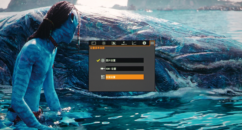 全新的菜單布局,分為圖片設置、HDMI設置以及安裝設置