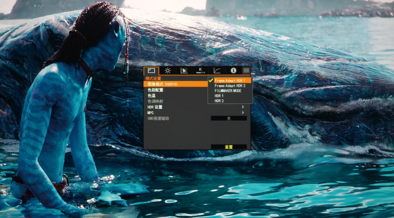 在HDR圖像模式的設置選項中,包括了兩種Frame-Adapt-HDR模式,兩種常規的HDR模式和製片人模式