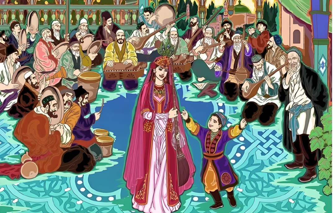 木卡姆作为一种大型歌舞套曲,其产生要早于15世纪。明朝的地方政权喀什噶尔汗宫廷乐师克迪尔汗叶尔羌(-1561)在《戴瓦尼克迪尔》一书中曾记述了当时木卡姆的演唱情况和各种乐器的演奏。1893年新疆和阗学者毛拉依斯木吐拉写有《艺人简史》一书,记载15至16世纪17位艺人创作木卡姆的史实。书中提到的木卡姆曲名,大多与今流传的曲名相同,使用的乐器也一样。在亚洲木卡姆分布广泛,但以我国维吾尔族保存的种类最多也最完整。