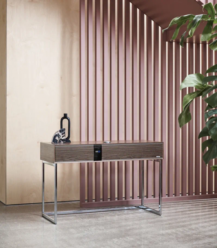R410是一款高雅的桌面音樂系統,注重音質,外觀也非常出色,配有令人驚艷的大型、傢具級的實木貼面外殼。它的設計風格既經典又有一種奇妙的timeless氛圍——公司標誌性的橫向木條賦予它一種極簡主義的斯堪的納維亞風格。然而,它的美麗不僅僅停留在外觀上,R410還具備卓越的連接性,能夠流式播放多種不同格式的音樂文件。其黑膠唱機前置放大器將讓模擬音響愛好者倍感欣喜,而一對高質量揚聲器在120W D類功放的驅動下,呈現出極為出色的音質。