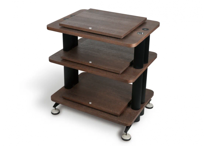 很多資深音響發燒友認為音響架的重要性也是毋庸置疑的,其作用有甚於普通的腳釘等附件,因為其要承托昂貴、重要且極為敏感的音響設備,當中對導震和抗干擾能力要起到積極的效果。尤其是當您使用黑膠模擬系統時,對器材之間的避震要求可能會更為嚴格。目前市面上對音響架的設計和理念都很豐富,大多分為被動式和主動式的導震技術。被動式理念就是通過簡單的架子增加自重,或加入腳釘等靜態附件,以強化對器材承托能力的穩定表現;而主動式則更為豐富,例如對架子底部裝入避震彈簧、加入阻尼物料、添置敏感的傳感器監測設備受到的振動表現。當然主動和被動也會經常混合採用,這種設計自然也是綜合了二者的優勢。越是高端的系統,對「精準重播」的要求越嚴苛,因此器材上的絲毫震動,對系統的影響是牽一髮而動全身。