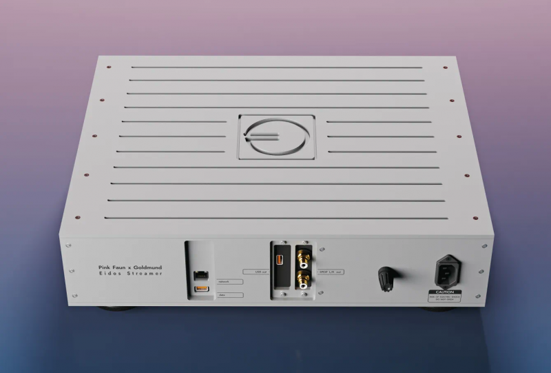 为了令Eidos Streamer在Pink Faun操作系统下获得最好的声音表现,Goldmund专门定制功能,并进行精细调整,以实现更为卓越的性能表现,包括CPU时序噪声以及与Goldmund有源音箱的匹配设计。另外,Eidos Streamer也应用了Goldmund一贯的“接地”设计,可以最大限度减少不必要的干扰,确保信号的纯净性。另外,Eidos Streamer采用CNC铣削铝制机箱,提供优雅的灰色和黑色两种颜色选择。为了实现静音设计,内部采用了水冷式热管的被动散热系统。另外,Eidos Streamer具备有线和无线选项,为追求简约家居空间的用户提供最大的灵活性。