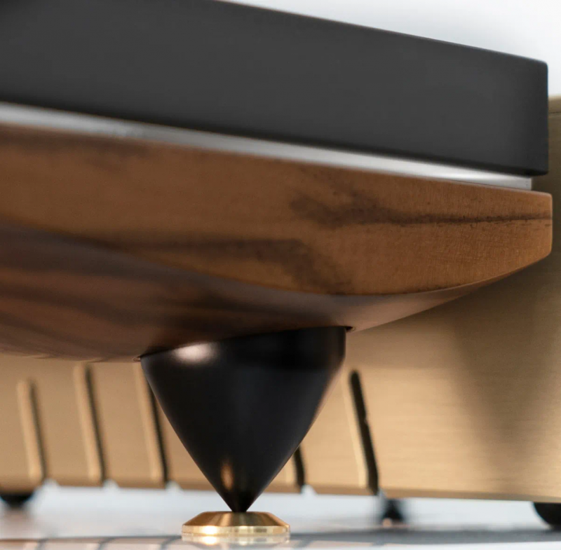 Pianosa 唱盤的設計理念,是 Gold Note 對音樂體驗極致追求的完美詮釋。其下基座巧妙採用懸鏈曲線設計,宛如一件精美的藝術品,不僅在視覺上帶來獨特的享受,更在聲學性能上發揮着關鍵作用。您可依個人喜好選擇質感溫潤的胡桃木,或是冷峻質感的黑色漆面中密度纖維板材質,而這些基座均由意大利頂尖工匠傾心手工打造。從木材的精心挑選到每一個加工環節的細緻入微,確保了每一件作品的卓越品質。