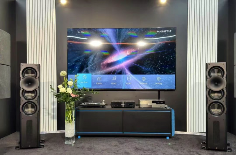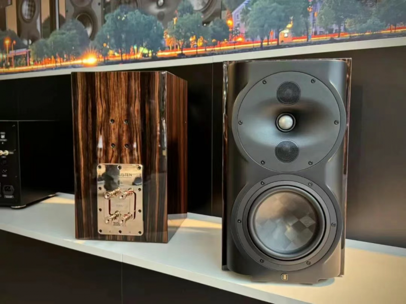 麦尼塔展区中展出的一对A4T是A系列的代表型号,延续了Perlisten一贯的高解析力与低失真声学设计理念。Perlisten A系列扬声器的高音单元都采用35mm蚕丝球顶设计,提供平滑自然的高频响应,而低音单元则使用碳纤维材料,确保低频的深沉有力。整个系统在中小型房间中展现出良好的空间感与声场定位,人声自然饱满、细节丰富,同时兼具足够的低频量感与控制力,展现了A系列在音乐重播方面的均衡性能与声音质感。