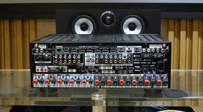 此外,两款设备内置的功放和低音炮输出已经足够支持玩家配置7.4.4或5.4.6(AVC-6800H)的家庭影院系统,以及5.4.4或7.4.2声道配置(AVR-X4800H)。并且,每个声道均采用了独立放大电路模块,AVC-6800H提供 140W@8Ω/ 250W@6Ω 功率输出;而AVR-X4800H则提供 125W@8Ω / 235W@6Ω 功率输出。其实两者的多声道解码和处理能力还不止于此,若给他们再加接一台两声道后级,就能多两声道输出,从而让AVC-6800H组建13.4声道系统,而AVR-4800H则可以组建11.4声道系统。