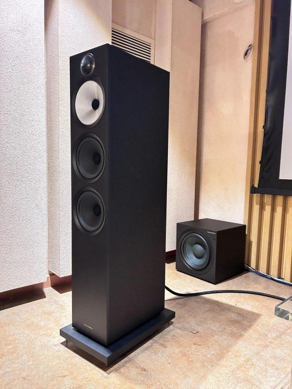 主音箱选用了603 S3,这对较大的落地式音箱采用了三分频设计,是600系列中尺寸最大且定位最高端的产品。其设计旨在提供深沉而丰富的声音表现,确保每个细节都能被清晰地呈现出来。