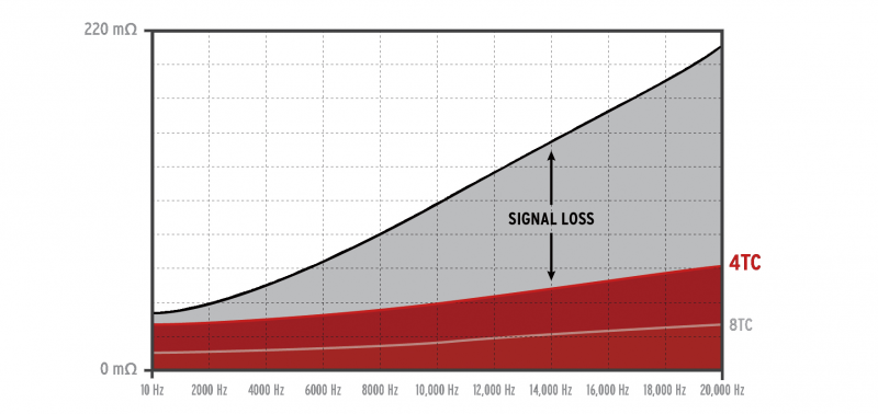 4TC导体方面,4TC/8TC/12TC喇叭线均采用高纯度的OFE无氧铜导体制作而成,其导电性均领先行业,超过导电率IASC标准的102%,同时拥有非常低的电感设计。