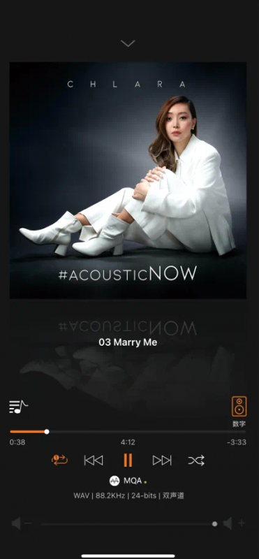 在编辑部的试音室,我首先使用SL1P读取NAS的音乐文件,Chlara专辑《Acoustic NOW》中,人声的分析力出众,通透性强。Chlara在Spotify上的歌曲点击播放量高达2000万次,她的嗓音甜美,诠释英文歌曲时十分有韵味,同时背景的伴奏音乐的起伏以及微动态十分出色。你会发现Chlara的在演奏时细节的表现很强,例如当中的齿音和哽咽声等。当然,整个曲目在Eidos的表现下,把人声的情感很真实地流露了出来,非常动听。