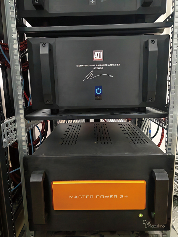 为了驱动这个复杂的多声道系统,采用了多种高品质后级功放设备,包括用于主声道的Dan D’Agostino Master Power 3+、ATI 6007、Datasat RA7300以及两台ATI 3308。此外,蓝光播放机选用了麦尼塔UDP900,并搭配madVR视频处理器,进一步提升视觉体验。