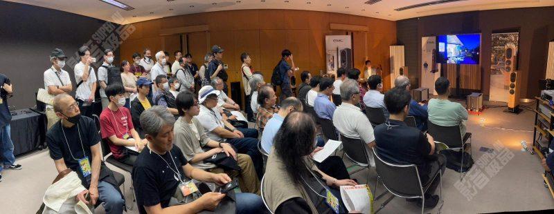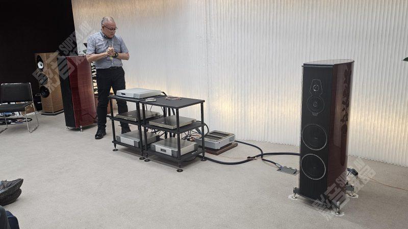 PMC展房,正在演示新品Prophecy 9座地式音箱