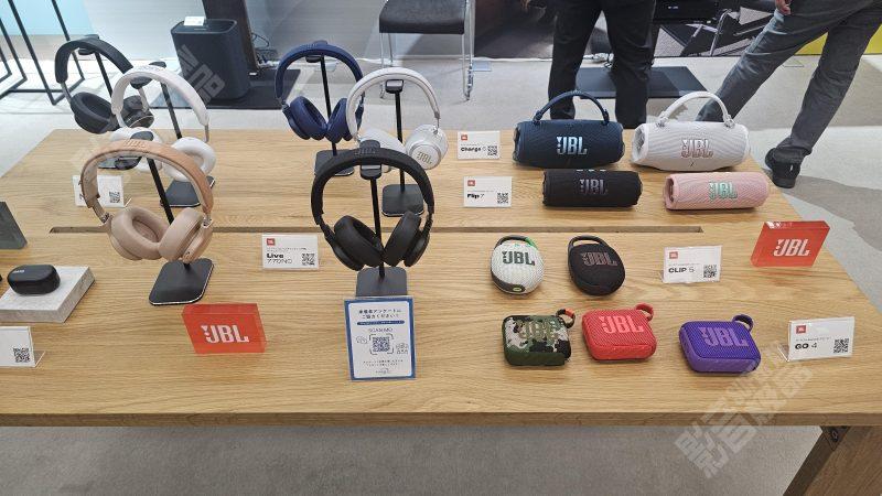 多款JBL便捷蓝牙音箱和耳机产品的展示