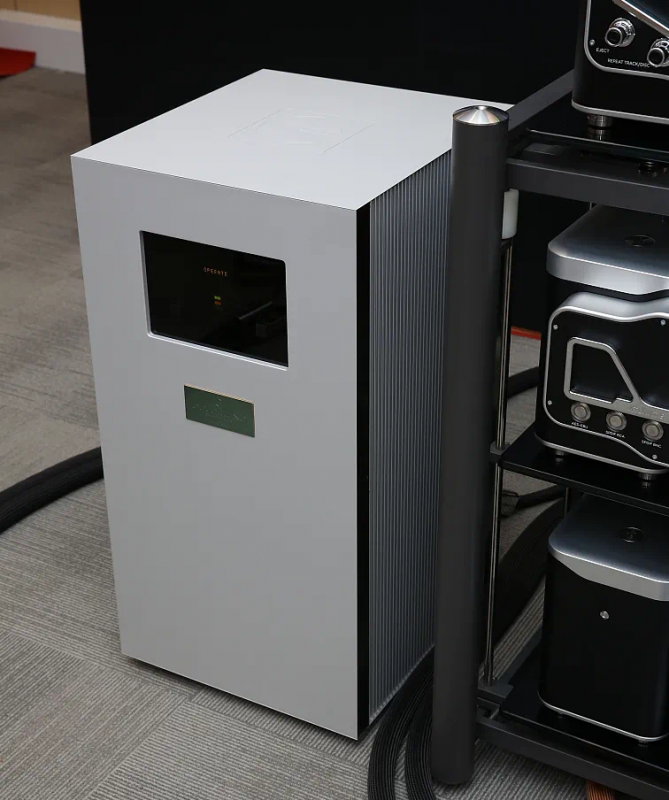 当下众多高端数模转换器材中,大多数产品内部的数模转换芯片都高度依赖现成的芯片制品,也有极少部分绕开这一供应。但却极少有品牌专门为此而开发属于自己的数模音频芯片,其中WADAX就是为数不多的一员。因此,两套演示系统的音源都采用了WADAX产品,其中B系统的音源更是动用了WADAX 旗舰Reference系列转盘和解码器。WADAX Reference转盘采用独特的突破性技术,带来其他服务器无法比拟的音乐性能。但更重要的是,厂方的目标是将无与伦比的音乐性能与流媒体音乐和高清文件播放前所未有的覆盖范围和访问方式相结合。Reference系列转盘的精密加工底盘结构复杂且极其坚固,不仅能将易损数据与外界隔离,还能隔离服务器内部的各个部分,并通过机械和电气接地连接每个关键部分,防止机械能量或辐射能量从一个部分传递到另一个部分。该转盘的数字组件采用了WADAX自主研发的 MusIC Chip 2 技术,这是一种前馈误差校正系统,可以补偿数模转换路径中的时间、幅度和相位误差。