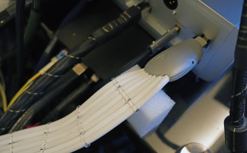 Burni表示,NSP-GR串流转盘/Roon服务器与WR-DSD解码之间的连接通过两种方式进行,现行使用的是Esprit专门为APL HiFi DTR接口定制的网线,其基于I2S协议,当然也可以通过常规的USB连接实现(使用的是Ikigai Sugure USB线),I2S和USB接口协议均属于能支持信号原生传输,但相对而言I2S规格会更高,带宽会更大。而第二种方式是通过Roon Bridge来实现,若通过这种方式,加持的设备自然少不了发烧的交换机和网线。作为熟悉IT硬件设备的Burni,自然深谙时钟和抖动对高保真影响的重要性。为此,他使用了同为APL HiFi旗下的ANS-MR发烧交换机,这款产品我在不同场合系统中均有所发现,也可见其效果出众和口碑不错。发烧网线方面使用了多个品牌的产品,包括Dalby Meda OF、Esprit Gaia、Göbel High End Statement、Reiki Jundo等。在以何种连接方式获得更好声的探讨上,我和Burni对Roon Bridge网桥能令声音展现出更高的精致感和立体音像拥有一致的看法,当然,出色的发烧交换机和网线发挥着重要的作用。