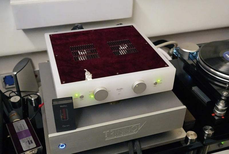 Burni日常主要通过Roon来聆听Qobuz网络音乐,以及播放自己建立的数字音乐图书馆中的音乐档案,闲来之时则会聆听黑胶唱片。黑胶转盘为Vertere MG-1,搭载Vertere SG-1唱臂和EMT Novel Titan唱头,而唱头放大器则用到了日本Zanden Model 120。这款唱放采用分体式电源设计,支持双MC唱头的输入和切换使用,拥有5组可选的EQ曲线(包括标准RIAA、Teldec、EMI、Columbia和DECCA)。内部采用固态放大电路设计,当中更加载2个Jensen升压牛以适应更广泛的低输出唱头使用。而针对唱放当中敏感的组件,专门设计了3层屏蔽层以隔离干扰,保证声音还原出低噪声和宁静的声音效果。而前后级放大器上,Burni同样使用了Zanden旗下的Model 3100电子管前级和Model 6000立体声电子管后级放大器,下面我向大家详细介绍一下。