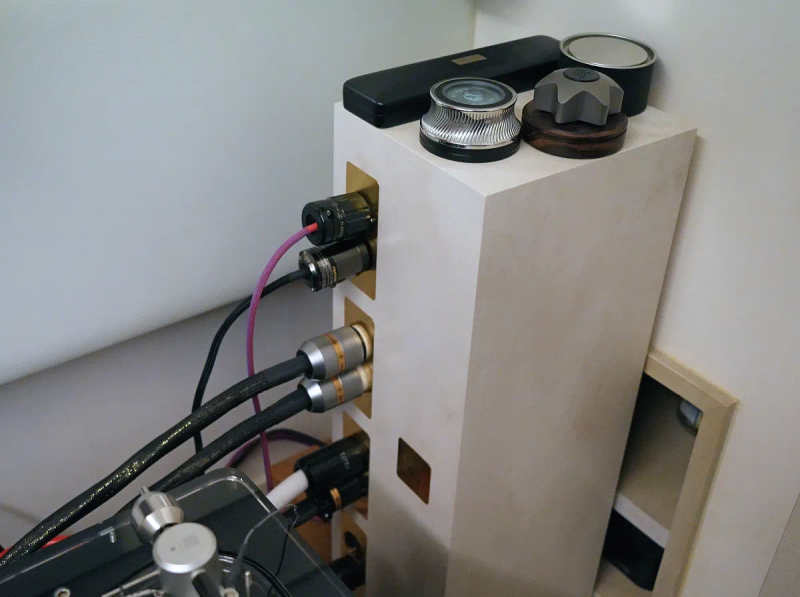 因此他从室内供电源头进行改造,入户电箱改用PowerLab的专业产品,并以瑞典Entreq音乐农夫地盒接地加持,而系统墙插则使用了丹麦Argento旗下的FMR EE发烧级制品,供电总线为Sternklang Kannon PC电源线。为了让系统供电获得纯净电能和极低的干扰和噪声,Burni采用德国Trinity Power Supply Conditioner(PSC)Golden Reference Edition电源处理器,其能满足极高的滤波衰减要求,从几千赫兹到3GHz的宽频率范围内提供保护,并结合高浪涌电压保护电路,满足包括核电磁脉冲在内的所有要求。