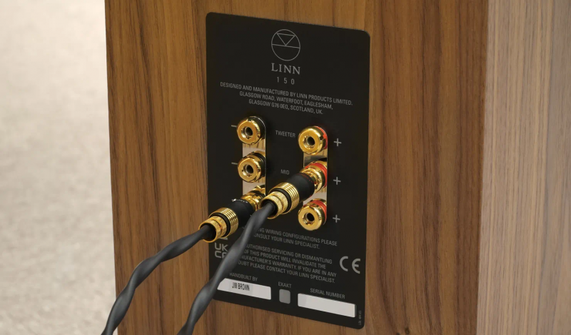 三音路设计的LINN 150,外观延续LINN多年来的简洁设计,纤瘦的箱体搭配胡桃木外观,让LINN 150可以轻松融入居家装潢当中,成为低调又好听的装饰品。LINN 150,高音单元外面有LINN商标的金属保护饰环,这是向旗舰LINN 360看齐的设计,而中音与低音单元的摆设,也参照LINN 360旗舰,尽量浮在音箱前障板上面,提升单元声波扩散性,而且不加上网罩,让单元自由呼吸开声。为了强化低频扩散性,LINN 150采用低音反射孔向下发射设计,所以LINN 150的底座与箱体采用架高设计,从低音反射孔向下宣泄的低频气流,可以朝LINN 150底座的四面八方宣泄。