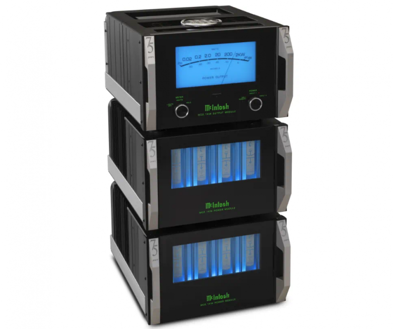 这是McIntosh的旗舰单声道后级,采用三分体式设计,包括一台输出中心(Output Module),搭载McIntosh知名的输出变压器,两台独立之后级放大线路(Power Modules),各负责1000W的输出。整套可在阻抗2Ω、4Ω或8Ω之下输出完整高品质的2000W驱动力。MC2.1KW采用McIntosh经典的外观设计,前方有大型蓝眼睛指针及抛光不锈钢镜面、全铝合金把手等。