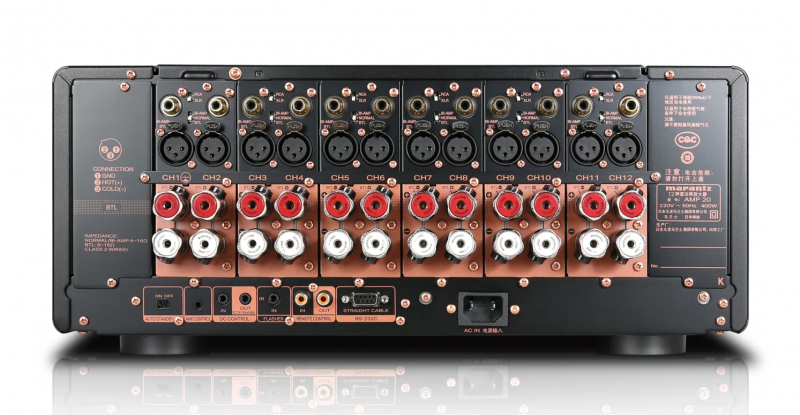 Marantz AMP20共配備12個模擬輸入通道,每個通道由一個平衡XLR輸入和一個非平衡RCA輸入組成。每個輸入通道對(CH1/CH2、CH3/CH4、CH5/CH6等)之間都有一個輸入開關,需要設置為XLR或RCA。