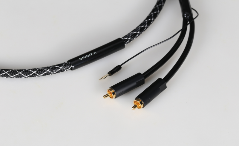 Spirit唱盤線的絕緣層使用了PE和PTFE材料、尼龍套管以及80°C PVC護套。導體以鋁箔聚酯薄膜包裹,並結合多股鍍銀銅緊密編織而成的屏蔽層。Spirit唱盤線的接地線採用50cm OFC無氧銅導體的線材,帶有24K鍍金接線叉頭。