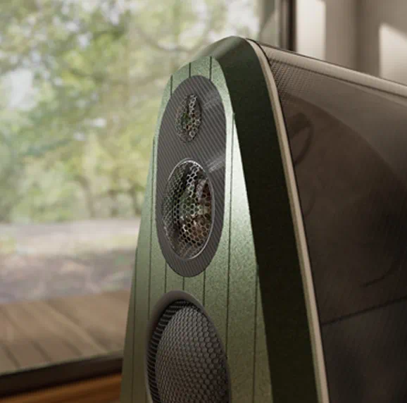 其中,Marten Coltrane Quintet Extreme座地式音箱采用四音路设计,专为在真实生活空间中实现高性能聆听而优化。其箱体采用碳纤维层压板构造,夹层中包含铝板、纤维板和实木,经过精心设计以最小化共振,同时保持时间和相位准确性。