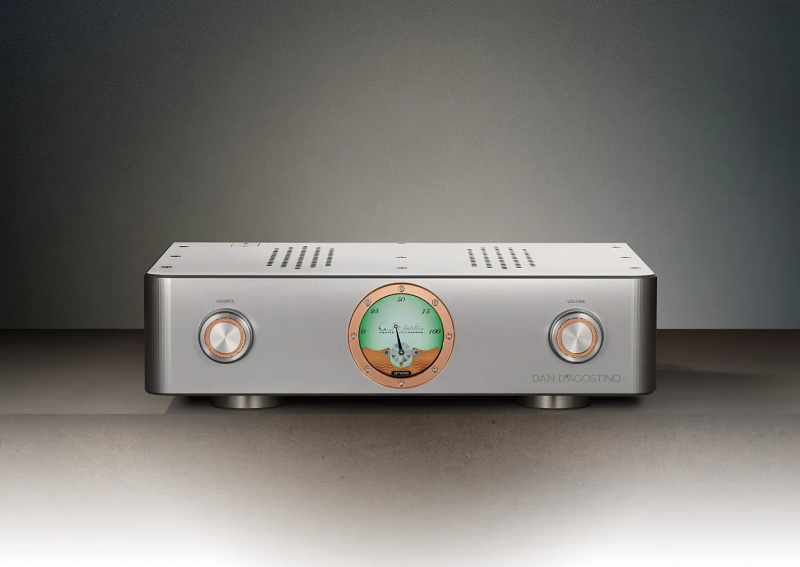 从外观上看,Pendulum尺寸非常紧凑,具备标准机箱宽度,但高度和深度都比Progression合并机要小,整体外观金工的复杂程度有所降低,不过依然保留标志性的Dan D’Agostino表头设计,唯独该表头并非实体指针表头,相反以电子屏取代,但准确性和灵敏度丝毫不减。除此之外,前面板两侧对称布局了信道切换和音量调节旋律。可以说,Pendulum保留了Dan D’Agostino铜色和银色的搭配,以及高辨识度的设计元素,通过更简约的机箱线条,迎合更关注音质和多音源聚合的入门用户。