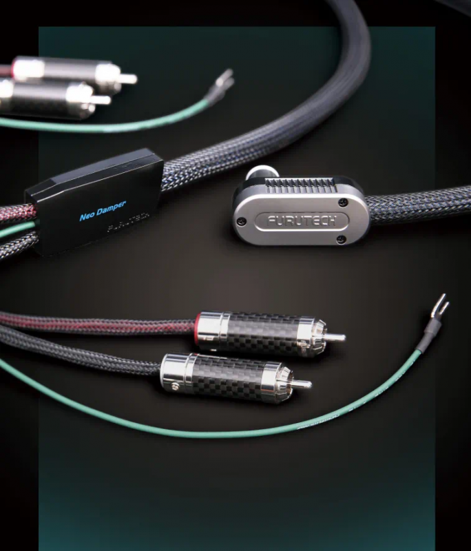 另一端所配备的RCA插头,则选用了Furutech公司高端的CF-102(R)型号,这款产品属于厂方于2009年开发的新一代碳纤维系列中的旗舰级作品。该RCA插头的中心信号极点导体采用了厂方专利的α(Alpha)OCC单晶铜,并经过镀铑处理,确保了信号传输的纯净与稳定。主体部分则由经过α技术处理的铜合金制成,并同样进行镀铑,结合碳纤维避震技术和无磁性不锈钢外壳的应用,进一步提升了整体性能。