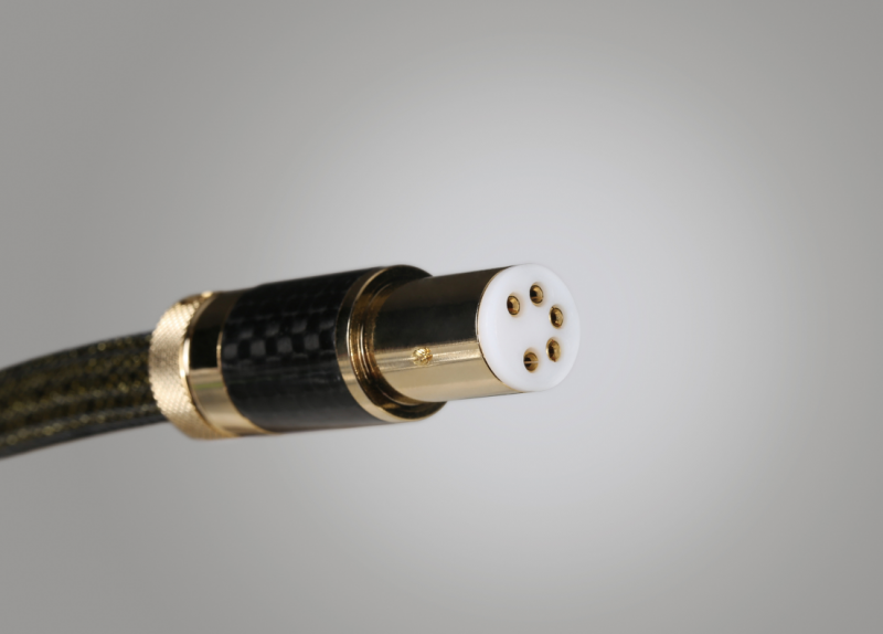 绝缘层包括石墨烯掺杂低密度聚乙烯、FEP/Tef电介质、纯棉编织,屏蔽层包括铝箔和镀银编织,最后还包括单丝/防静电编织外层披覆。Midas Gold接头版本包括直DIN-RCA和曲DIN-RCA,而RCA接口均进行了24K高品质镀金处理,保证信号低损耗传输。DIN插头采用碳纤外壳,同样拥有24K镀金高纯度铜芯,结合PTFE/Tef绝缘物料,并具备1877抗应力插针结构。