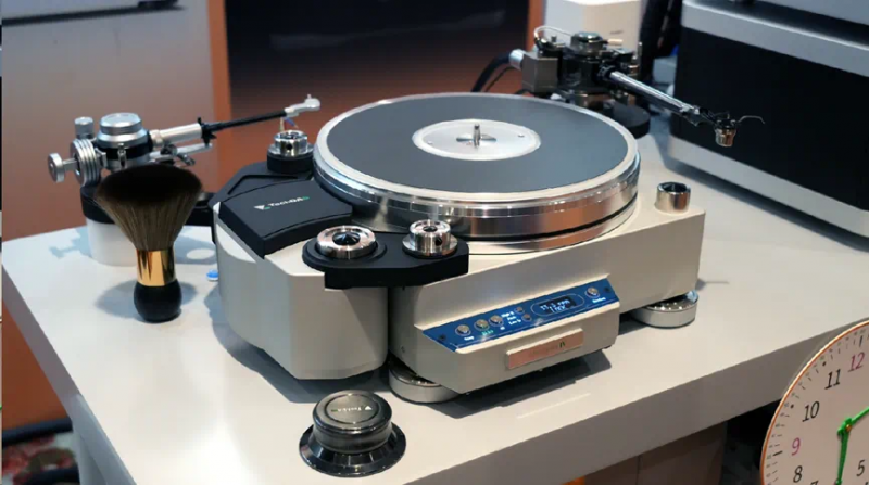 Motofumi Hirata表示,Air Force IV主体机箱采用坚固A5052实芯铝合金精密CNC加工而成,表面经过银阳极氧化处理。而转盘方面,Air Force IV采用由坚固的A5056合金加工而成的重型一体式转盘,而入门级型号的Air Force V Premium则采用了双转盘结构,由此Air Force IV音质将得到全面的提升,拥有更宽的频率范围和显著增强的动态效果。结合TechDAS招牌的气浮技术,令9公斤重的转盘在转动时实现极低的底噪,顶部锥形的主轴可以吸收偏离中心的黑胶唱盘的任何晃动。转盘顶部采用特殊的减振和防静电薄垫,以保护唱片。