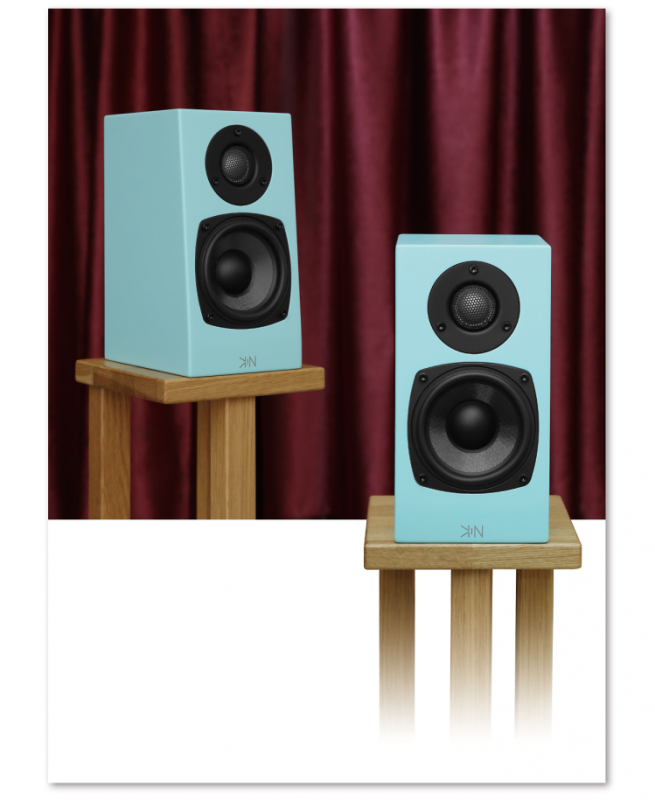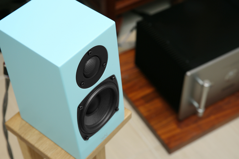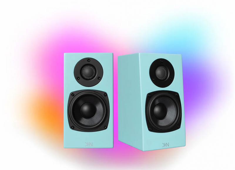 在格兰公司的试音室现场,初见Totem Acoustic KIN ONE已是相当惊艳,除了延续Totem Acoustic一贯的紧凑小巧外观和非平行面箱体的设计风格,当日示范的KIN ONE选择了一对特别的蓝色版本。这是一种鲜亮的、介乎蓝色和绿色之间的颜色,我们习惯称其为蒂芙尼蓝。除了这个蓝色,厂方还为KIN ONE赋予了更多色系的选择,如黑色和白色,还有更彰显个性的橙色和粉色。