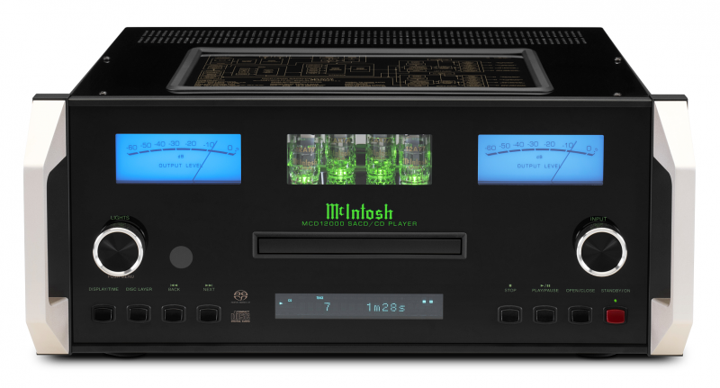 用作本次演示系统音源部分的McIntosh MCD12000 SACD/CD播放器,外观方面毫无疑问依然是经典的“黑色玻璃面板”+“湖水蓝指针表头”+“胆石混血”+“古典旋钮按键”+“前置提手”!这台参考级播放器既有机械感、复古感,也有时尚感和科技感。在其数/模转换电路部分,MCD12000的核心是两只ESS品牌旗下的顶级数位芯片SABRE ES9038PRO,都是32位/8信道规格,左右声道各一只。这只芯片采用了ESS专利的HyperStream®II架构和时基抖动消除器,以提供最高的性能水平,满足最苛刻的数字音频应用的需求。每只芯片都工作在8信道平衡单声道模式下,8组输出用于驱动模拟信号,从而获得卓越的音质。同时,MCD12000相互独立的数字和模拟电源可以让电源和音频信号避免交叉污染,而特制的R-Core电源变压器可最大限度地减少电流噪声。