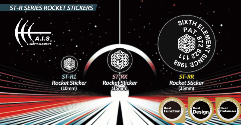 配合Sixth Element独家首创、专利制程技术, ST-R系列火箭贴片可令高中低三频线性带宽进化,全方位优化音质、活生感,聚焦音场。ST-R系列火箭贴片更极致、讲究,材料、制程全面升级并加入防伪设计。该系列目前细分有ST-R1、ST-RX和ST-RR(直径分别为10/15/35mm)三个型号,可系统性的支持所有设备应用。利用最新的高阶镧系元素与独家专利技术,相较先前推出的ST-X / ST-P / ST-PP,音质风格最大的不同在于ST-R系列火箭贴片可以呈现更清晰宽阔的3D音场和更好的细节表现。