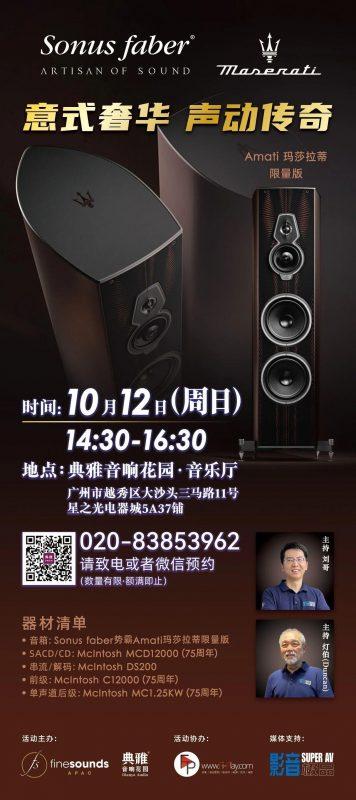 本次活動結合美國McIntosh麥景圖多款高級音響產品,向大家帶來「意式奢華,聲動傳奇」為主題的器材演示和音樂欣賞活動。讓大家現場品鑒Sonus faber勢霸與瑪莎拉蒂聯名打造音箱的魅力。