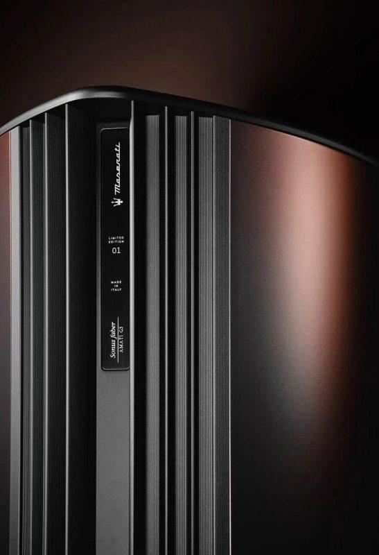 這是兩大標誌的碰撞:瑪莎拉蒂大膽創新的象徵與 Sonus Faber 歷史悠久的技術創新的碰撞。前面板也經過重新設計,將瑪莎拉蒂標誌融入著名的 VOS(Sonus Faber 之聲)中。