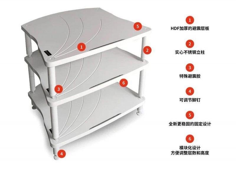 CLASSIC经典系列包含单排(多层)架,双排(多层)架,三排(多层)架和功放/后级架四款产品,黑白两款配色。