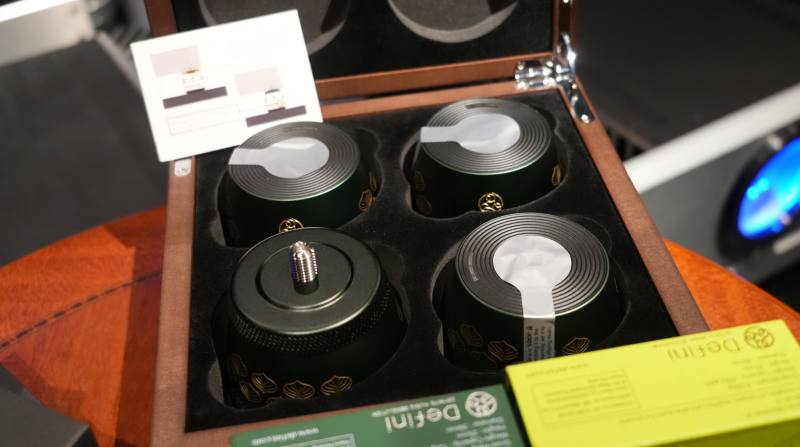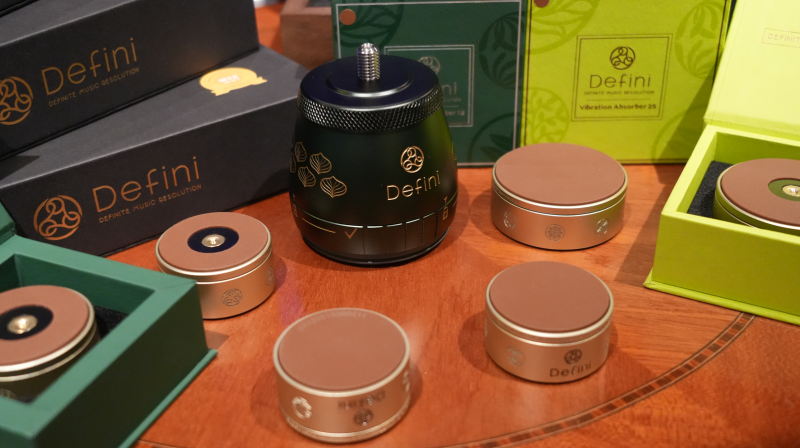 目前Defini(迪斐尼产品包括两类,音箱避震和器材减震钉垫。设计理念各有侧重,音箱脚垫致力于解决单元震动引发的谐波干扰与振动反弹。器材钉垫则专注于阻隔外部震动传递。产品规格十分周全,承重从每组50kg500kg不等,配备可调螺丝与锁死功能,兼顾稳定与灵活。黎先生女儿Vicky也有到场,她负责Defini产品的工业设计,深度参与产品的研发。她通过自己在英国学习建筑学专业的知识,把建筑结构和力学等理念融入到产品的设计中。
