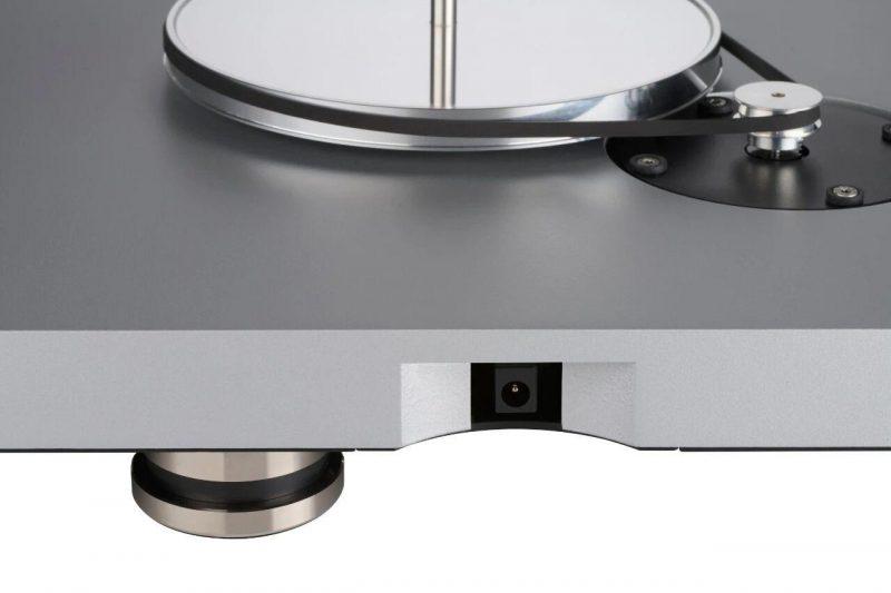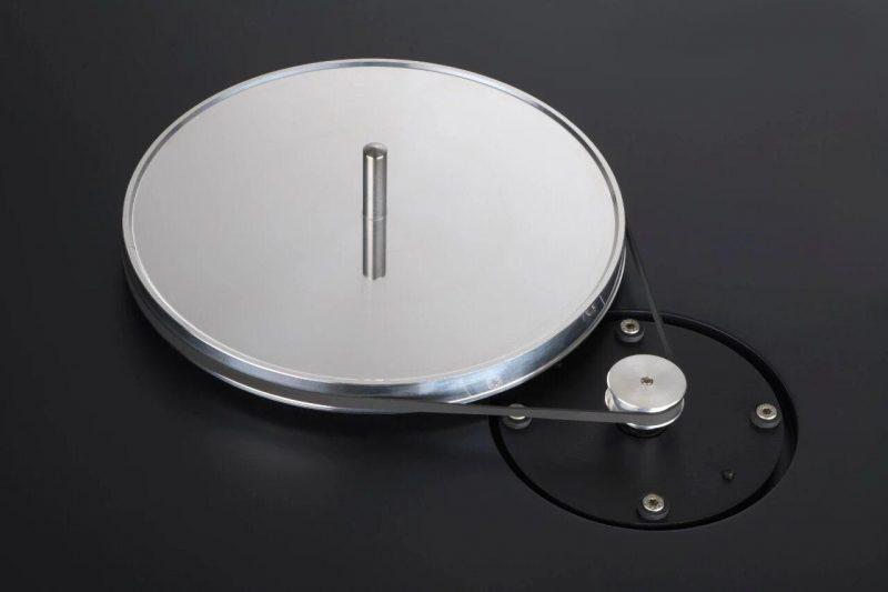 Clearaudio Compass 采用扁平皮带系统驱动,由 12V 直流电机驱动,电机经过阻尼处理,用于控制共振。主转盘为 20 毫米厚的亚克力板,安装在 CNC 加工的铝制副转盘上,并由抛光钢主轴支撑,主轴在烧结青铜衬套中运行,衬套上配有特氟龙止推垫。转速精度为 ±0.05%,支持 33⅓ 和 45 RPM 两种转速