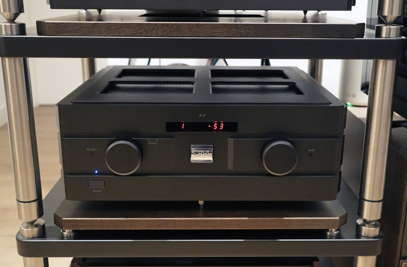 接口部分,A-3保持了3組XLR平衡和3組RCA非平衡的輸入,其中2號平衡輸入接口,可以切換正反相位,並且2號以及5號輸入信道,是可以通過撥桿切換成Bypass直通模式的。3號輸入通道,也兼顧了REC Input輸入的功能,並帶有1路REC Out輸出。另外,A-3還可以支持多台功放進行主從串聯,設置撥桿在背後的右邊。可以說,A-3合併機從設計的嚴謹性到功能的全面性,已經去到無可挑剔的地步。