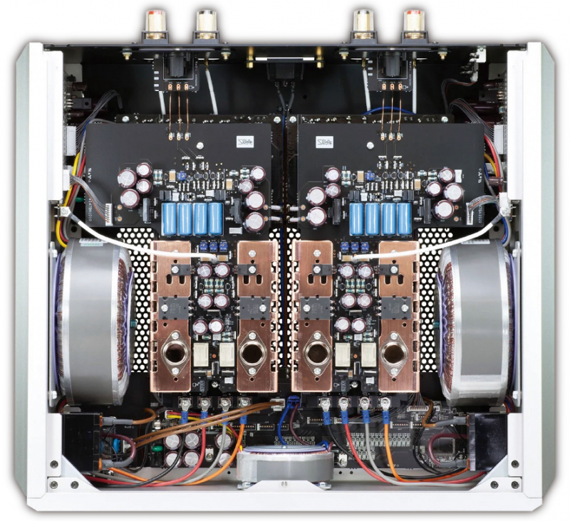 透過A-3的上蓋格柵,映入眼帘的是規劃整齊與驚人且滿滿用料布滿,無論是從器材上方或下方都是各式線路與組件,嚴然就是一部P-3與兩部M-3的結合,原廠特地列出了A-3的14項設計重點,有4項屬於功能部份,另外10項重點都是跟內部線路設計有關,下面我簡單羅列介紹。