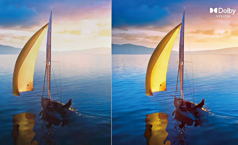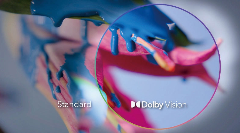 Dolby Vision主要特点,首先是支持最高12bit色深(理论值,目前设备多为10bit),可显示高达687亿种颜色,色彩过渡更平滑。其次是支持最高10,000nits的母版制作(理论值,目前电视亮度远低于此)。最后是兼容性广,从高端OLED到中端LCD电视都支持。