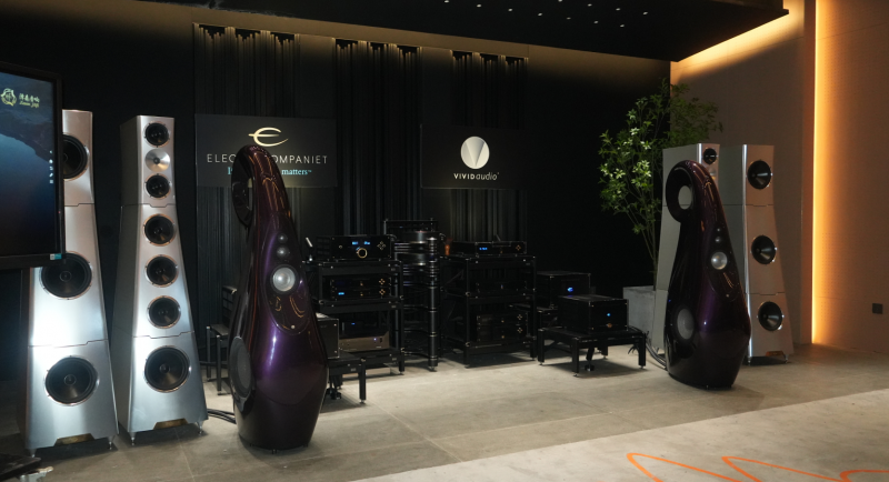 现场演示系统搭配的Vivid Audio Giya系列座地式音箱