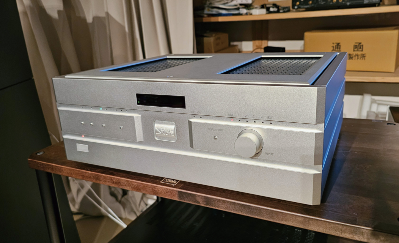 而A-2 Ver.2相较于A-1 Ver.2,在用料上有所加倍,更加豪华。内部组件布局依然采用对称方式。放大级同样使用了TO-3P的四级达林顿电路的晶体管,功率上,A-1 Ver.2输出功率在8Ω负载时为40W,每声道一对晶体管作推挽。而A-2 Ver.2则是作并联推挽,输出功率在8Ω负载时为80W。但非常有意思的是,上一代的A-2输出功率在8Ω负载时为100W,但到了第二代Ver.2时却小了,A-1 Ver.2同样存在该问题?加藤先生表示,这是因为放大线路进行了重新设计,尤其是使用晶体管并不一样,之前A-2使用4对晶体管,配对困难,要找到相当合适的配对成本高昂,而现在第二代的A-2改用了更高输出的电晶体,元件数量更少,配对难度低且运作一致性高,指标和声音都能更加匹配。尽管功率指标有所降低,但结合所升级的变压器和电路改进,实际从听感上不论动态、能量和控制力都更强。这一切的进化,令A-1 Ver.2和A-2 Ver.2比市场同级合并放大器更具竞争力。