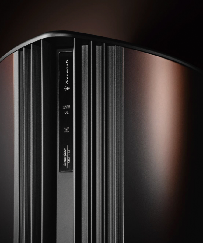 Amati Folgore限量版拥有卓越的技术实力,其优雅精致的设计定会引人注目。音箱顶部采用优雅的琵琶形轮廓,同时骄傲地展示着玛莎拉蒂标志性的三叉戟标志。这是两大标志的碰撞——玛莎拉蒂大胆创新的象征与Sonus faber历史悠久的技术创新的碰撞。前面板也经过重新设计,将玛莎拉蒂标志融入着名的VOS(Sonus Faber之声)中。